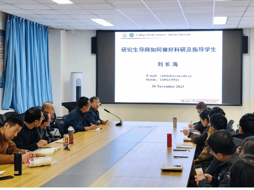 培训会伊始,刘长海教授以“研究生导师如何做好科研及指导学生”为题,从提高导师自身的科研素质及导师怎样指导好研究生两个方面,为前来参加培训的导师毫无保留的分享了自己三十多年来科研和研究生培养经验。刘长海教授指出“新时代的研究生导师要倡导科学精神,秉持求真务实,坚守教育初心,担当育人使命,真正把为学、为事、为人统一起来,当好学生的引路人。”同时刘长海老师分别从“尊重学生个性发展,教学相长”“营造学术氛围,开好组会”“扎实开展试验,凝练成果”三方面,就导学关系的构建、履行导师职责、创新人才培养、治学与育人、自律与自由、心理疏导等如何具体指导、培养研究生深入讲解。