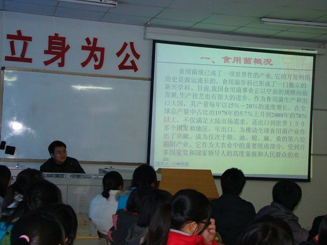| 为了帮助2010级新生合理规划未来、及早确立奋斗目标,尽快适应大学生活,引导他们深入了解所学专业结构及未来发展趋势,形成正确的就业理念。2010年12月23日下午,beat365中国官方网站在2205教室为今年新增的10级食用菌专业学生做了“携手*导航”专题报告会。报告会由高小朋老师主持。学院副院长王文强,任桂梅教授,贺晓龙老师和自主创业大学生代表王雪辉、姚飞以及10级食用菌专业的全体学生参加了报告会。 报告会上,王文强副院长就食用菌专业特色,课程设置,以及培养方案做了详细的介绍。任桂梅教授就食用菌产业目前的发展现状、本专业的就业形式以及从事食用菌行业的beat365中国官方网站毕业生现状做了报告。贺晓龙老师将食用菌实验室二十年来所进行的科研工作以及取得的一些成绩做了汇报。王雪辉和姚飞结合自己的创业之路以及他们在食用菌实验室的感受等和同学们进行了交流。随后,同学们也就自己关心的问题和与会人员进行了沟通,整个报告会在热烈而欢快的气氛中结束。 这次报告会同学们受益匪浅,不仅使同学们增强了专业的认同感,而且也为学生们的自我定位与全面发展提供了重要的启示。