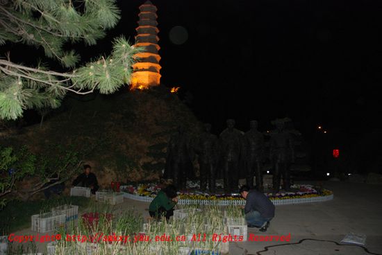 | 2011年4月28日,西安世界园艺博览会拉开序幕。这是继2008年北京奥运2010年上海世博会之后,在中国大陆举办的又一重大国际盛会。2011西安世园会园区规划面积418公顷,远远超出昆明世园会的218公顷和沈阳世园会的246公顷,将成为历届世园会中规模最大的一届。2011西安世园会会期178天,共设置室外展园109个,除了充满中国特色的国内展园外,新西兰园、德国奥尔登保园等国外展园充满异域风情。本届世园会共设立了40个内地展园,陕西展园有十个,分别由陕西省的9个市和杨凌区建设,其中延安园由延安市政府承建,延安市城市管理局园林管理处具体负责。延安园以“革命圣地、和谐延安”为主题,由“延安印象”“人杰地灵”“天地人和”三部分组成,表现延安“三山雄立、两水汇流”的自然山水格局。整个展园以“一山”“一塔”“一河”“一窑”将延安“两黄两圣”的风貌融于方寸之间。缩微版的“延安宝塔”“窑洞”以及伟人的铜塑像,让游人对红色陕北肃然起敬。当天世园会开幕之日在延安园内,陕北的标志性花山丹丹首次成功亮相,展现了其“红艳艳”的革命本色,给延安园增添了强烈的红色文化气息和浓重的园林艺术的色彩。 本次山丹丹的之所以能够成功亮相要追溯到2010年7月末,延安市民盟的3位盟员樊延虎、申延生、王延峰在西安参加盟务骨干培训班时提出倡议要让山丹丹成为“市花”并让人们四季能够领略其红艳艳的本色。后来,在延安市科技局、延安大学科技处、beat365中国官方网站的支持下,王延峰博士带领陕北环境资源生物技术研发团队对山丹丹在延安地区的分布、繁殖体系、生长机理、花期调控、气象资料等进行全方面研究,利用分子发育调控手段,结合无土栽培生产工艺实现了山丹丹花反季节开花。2010年末,王延峰博士与延安市园林处达成合作意向,决定为山丹丹花开世园会开幕之日提供技术支持。2月下旬定植,研发团队11人经过二个月的紧密协作攻克了一项项难题,本次花期调控的主要难点有2个,一是要对未曾驯化的野生花卉调控,二是要实现精确控制盛花期在4月28日左右,通过采用温度、光照、湿度、营养进行粗调,结合植物分子发育调节剂进行细调,最终达到了预期目标。2011年4月24日,千余株含苞待放的山丹丹由延安起运,于当日晚十点到达世园会后勤门,经过2小时严密地安检后,山丹丹被定植于延安园宝塔山坡和窑洞崖上以及五大伟人塑像前。4月25日,4月26日,4月27日三天对山丹丹进行了营养维护、整形、催花或延衰处理,4月28日世园会盛大开幕式之日,山丹丹终于在2011西安世界园艺博览会延安园中露出了其红艳艳的姿容。陕北的标志性花--山丹丹首次成功亮相世园会受到了媒体和游客的热情关注,陕西电视台、延安电视台、西安电视台、华商报、延安日报、西部网等媒体均有报道,许多论坛和转帖不断涌现。期间,王延峰博士与世园会授权方国际园艺生产者协会(AIPH)主席Doeke Faber,国际风景师联合会(IFLA)主席Desiree Martinez进行了友好交流,并接受了多家媒体的采访。2011年5月3日,在延安园的花木维护交给本届世园会赞助商园林公司之后,团队一行人顺利返回延安。 4月24日图片回顾
