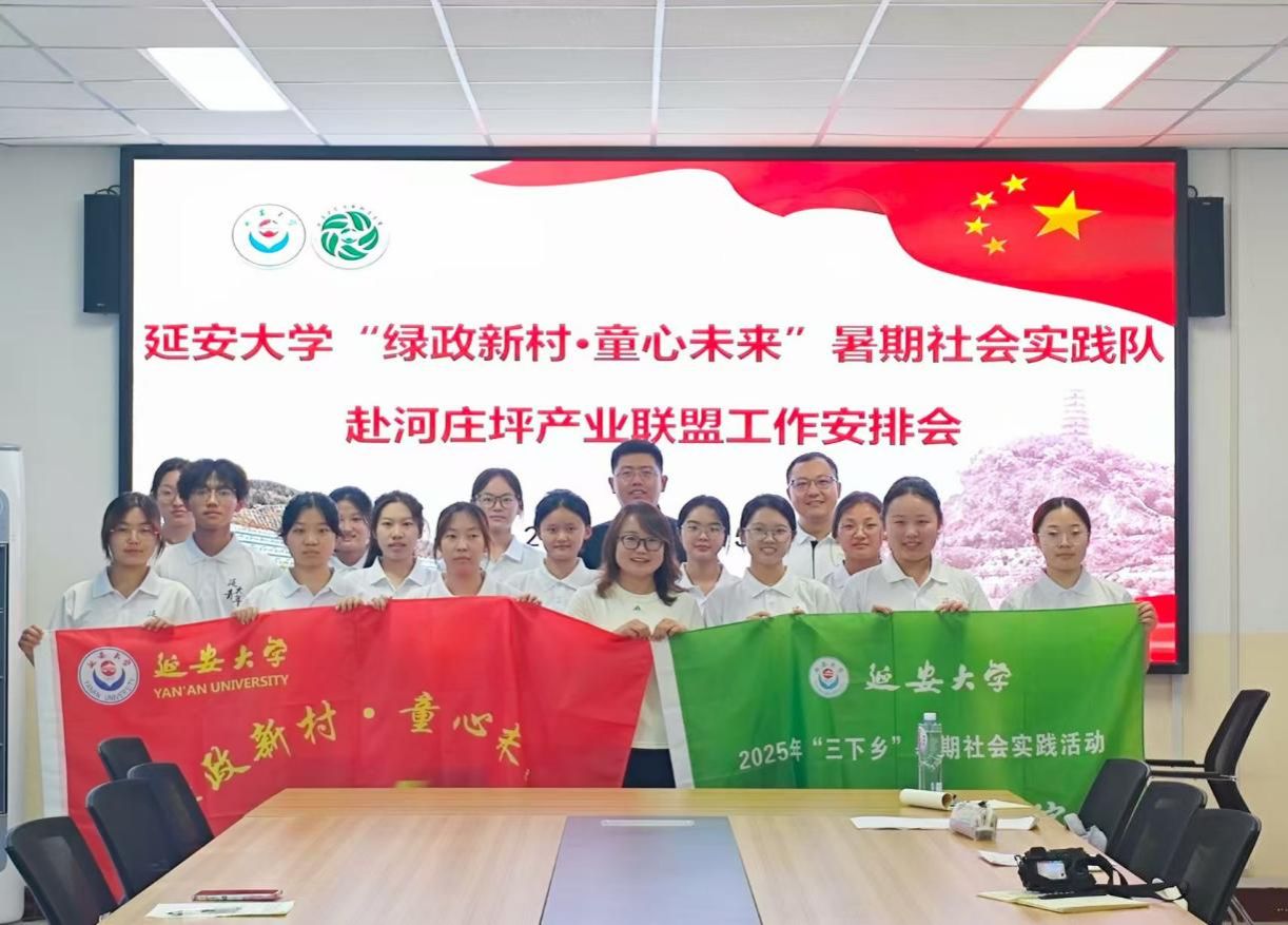 7月15日上午,由beat365中国官方网站牵头成立的延安大学2025年“绿政新村·童心未来”暑期“三下乡”社会实践队行前工作安排会顺利开展。实践队指导老师邓健、河庄坪镇产业联盟理事长高瑜、运营经理高磊和社会实践队15名队员参加会议。