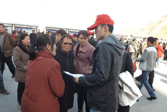 3月14日中午,11生技、12生技、13生技三个班的部分在逸夫楼前集合,举行了活动启动仪式。随后,在班长和团支书的带领下分别前往清凉山广场和枣园广场对延安老区人民进行健康生活常识与健康误区等方面进行讲解和更正,使正确的生活方式更加深入人心,得到了广大老区人民的一致好评。