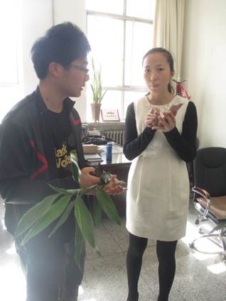 各学院老师在听完服务队成员的介绍之后,欣然接收了成员们的服务。成员们首先为每个办公室赠送了由专业老师配制的室内花卉专用营养液,并对所有的花卉认真观察,做好相应的记录;遇到花卉长势不好和叶片发黄等问题,成员们都会及时地为花卉稍作处理,并认真地告诉老师平时在养护方面应该注意的事宜;与此同时,成员们也为老师们在养护家中花卉方面的问题也认真地做了解答。21日下午,服务队根据之前做好的统计,为一些花盆内土壤板结的花卉更换成了疏松营养的新土。
