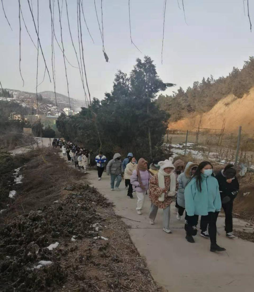 活动从早上9点开始,到11点圆满结束。大家从窑洞广场集合点出发,沿着指定路线,从延安植物园翻山绕行我校新校区,途经杨家岭革命旧址,最终返回先锋广场。一路上师生们精神振奋,疾步而驰,起初的些许寒意在大家矫健的步伐中不觉消散,植物园的山间美景、新校区的整洁校园、杨家岭旧址浓厚的历史氛围更使参与者心旷神怡。