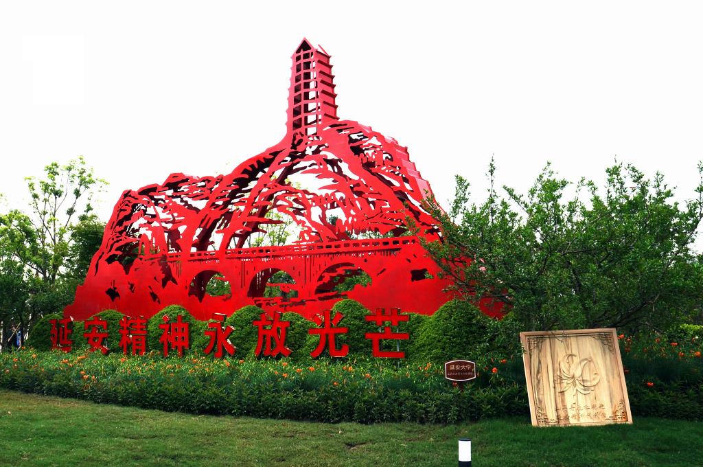 beat365中国官方网站山丹丹大学生创业团队作为主要参与方和参展团队共同设计完成“延安精神,永放光芒”立体景观。立体景观将延安宝塔山、延河水、延河大桥、陕北窑洞民居等有机结合在一起,以陕西特色剪纸艺术结合锈板的形式在园区展示。锈板两侧为山丹丹大学生创业团队以野生山丹丹为母本培育出具有抗倒伏、耐胁迫的新品种。