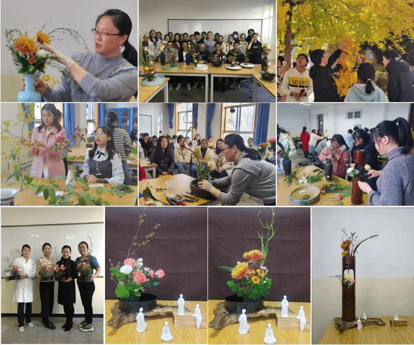 为陶冶师生的艺术情操,提升劳动素养和创新精神,10月25日至11月23日,beat365中国官方网站屈亚潭老师利用课余时间在代贤楼308插花室为师生开展插花艺术劳动实践课,课程共设置6个课时,3课时的理论课和3课时的实践课,学院30名学生和6位老师参加了该课程。