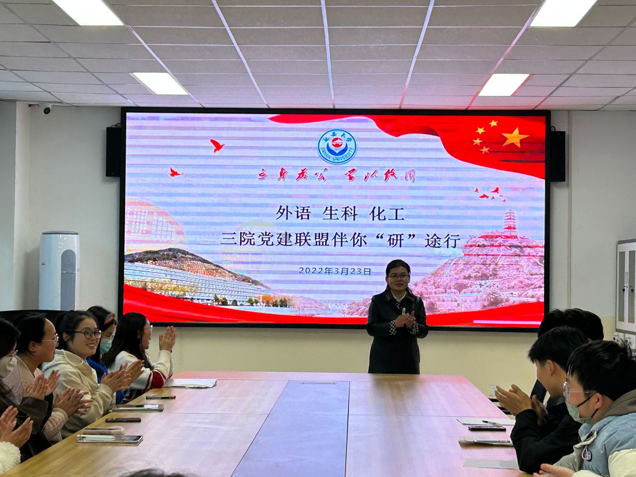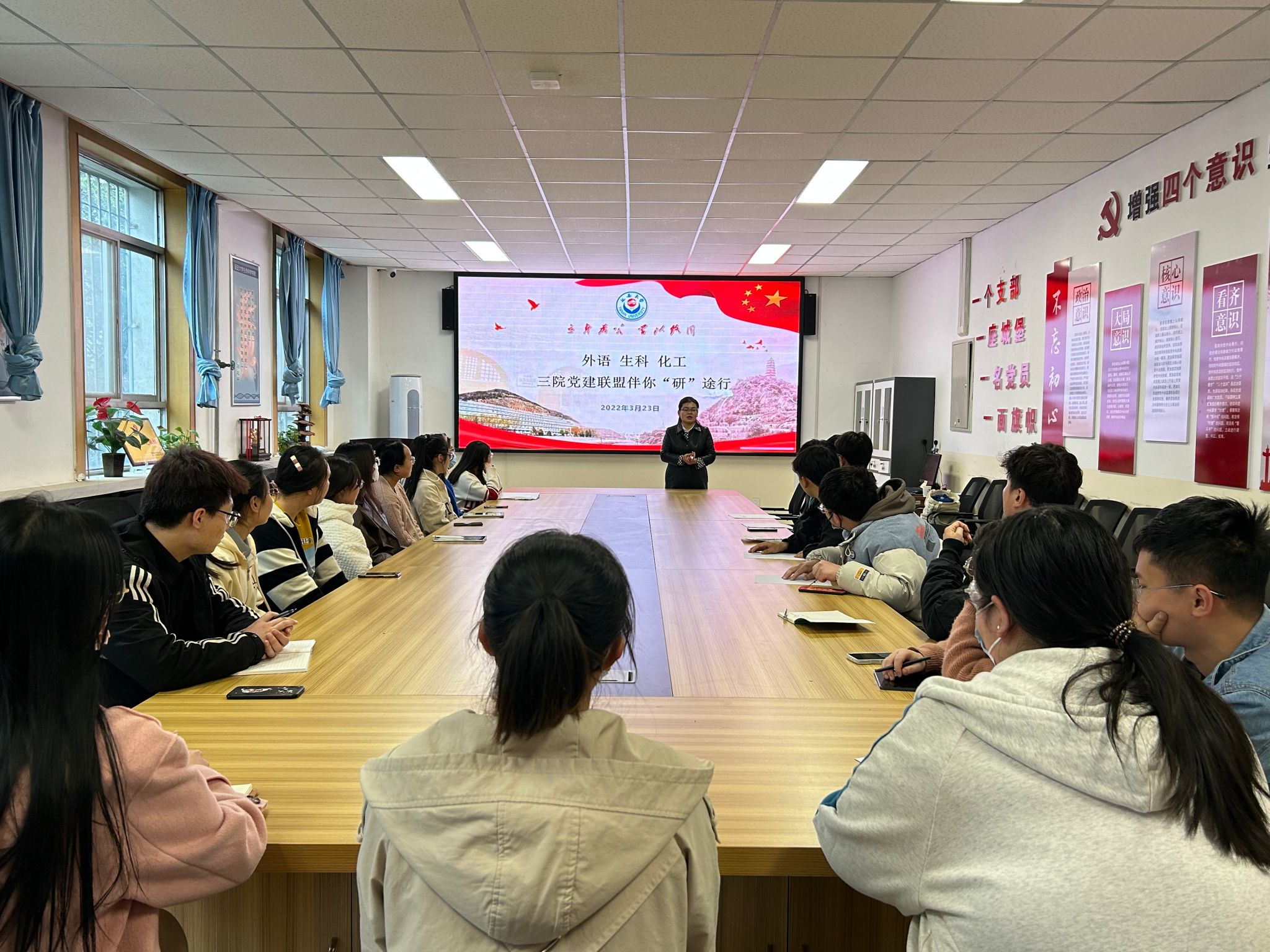 本次报告会是自2022年11月以来,beat365中国官方网站与外语、化工学院开展“扬帆起航 助力梦想”联合主题党建项目以来,依托《外国语学院 beat365中国官方网站 化学与化工学院联合党建示范活动协议》开展的系列活动之一,旨在深入贯彻落实党的二十大精神,切实发挥基层党组织在助推学院学科专业建设、提升人才培养质量、丰富党(团)组织生活等方面的领航护航作用。