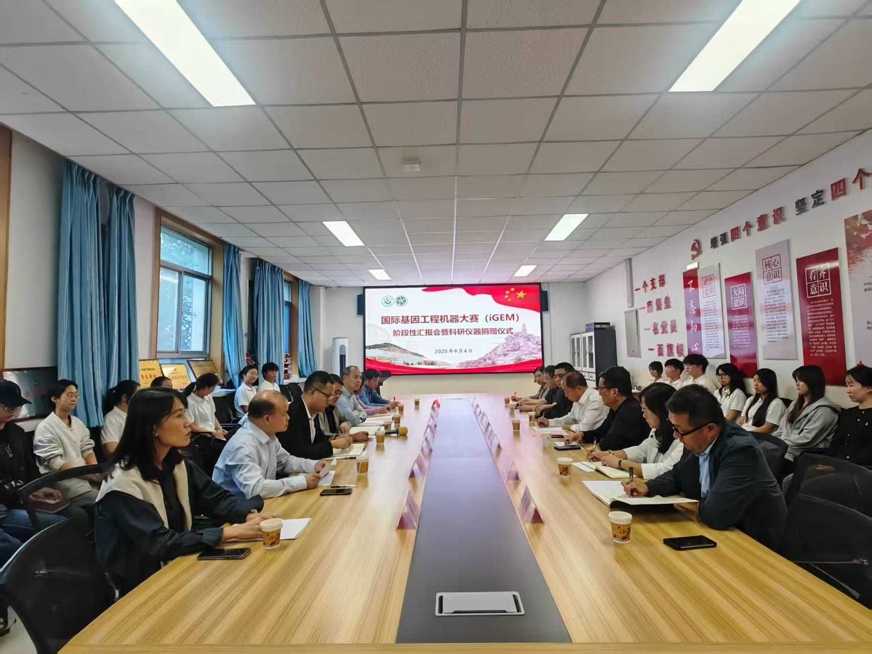 9月4日下午,beat365中国官方网站2025年国际基因工程机器大赛(iGEM)阶段性汇报会暨科研仪器捐赠仪式在杨家岭校区beat365中国官方网站会议室举行。副校长付峰、研究生院院长张向前、国际交流与教育学院院长成铭、经济与管理学院院长董庆来、beat365中国官方网站党委书记朱伟、院长陈国梁、副院长邓健、教学秘书刘冲和西安海研生物科技有限公司总经理詹晓华、办公室主任丁梅以及2025年我校iGEM项目团队师生共30余人参加了会议。会议由陈国梁主持。