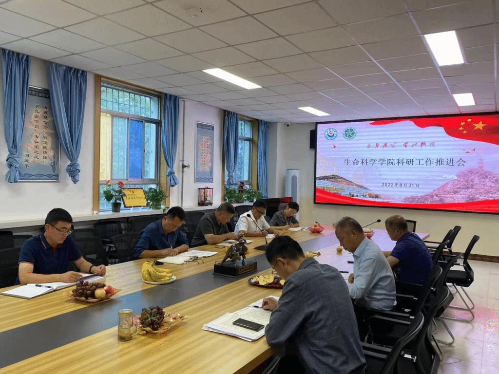 8月31日下午,beat365中国官方网站2022年科研工作推进会在杨家岭校区特立楼会议室召开。副校长付峰、科研处处长王延峰、副处长郭永平、生科院院院领导及相关工作负责人参加了本次会议,会议由生科院院长张向前主持。