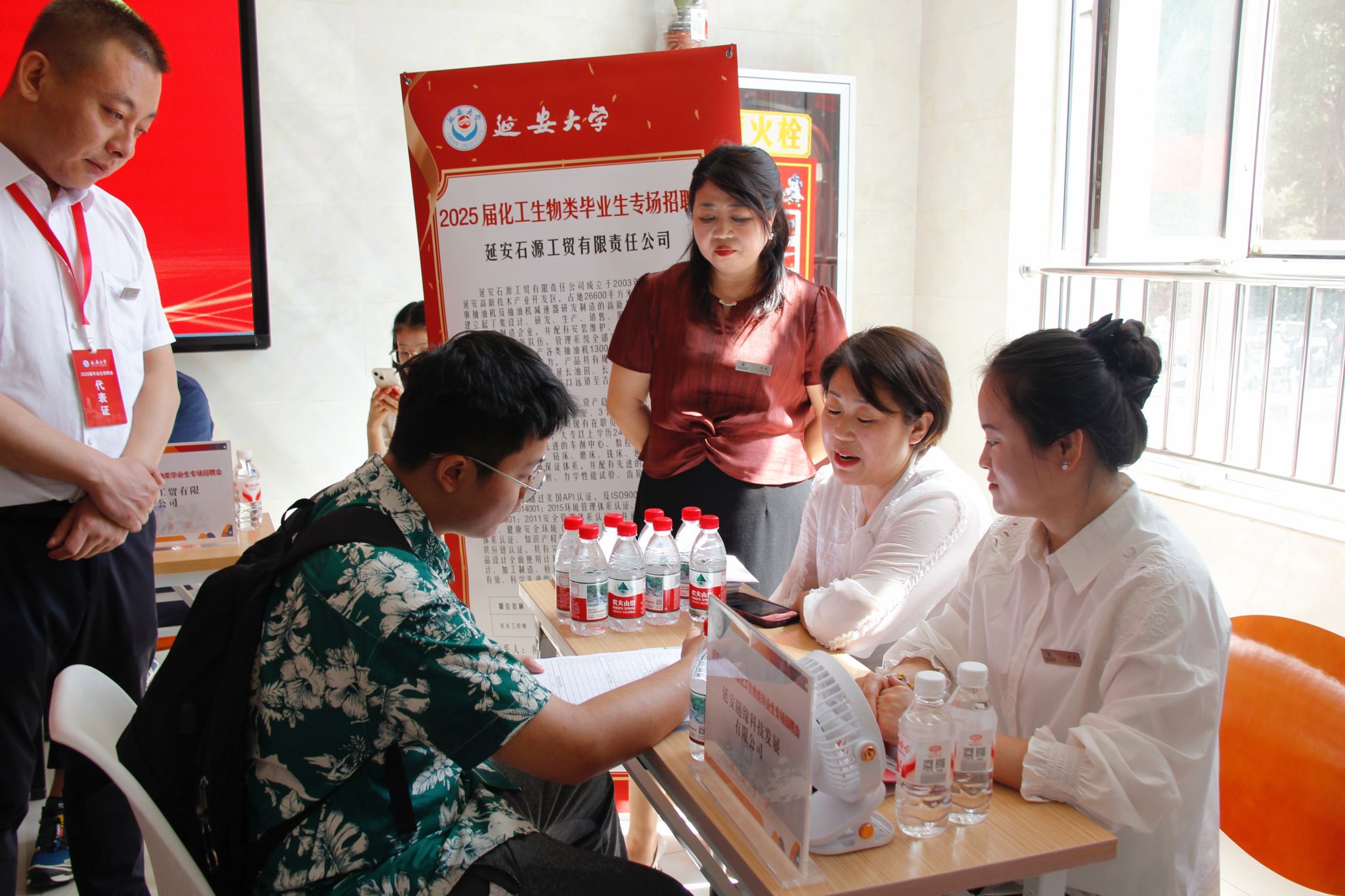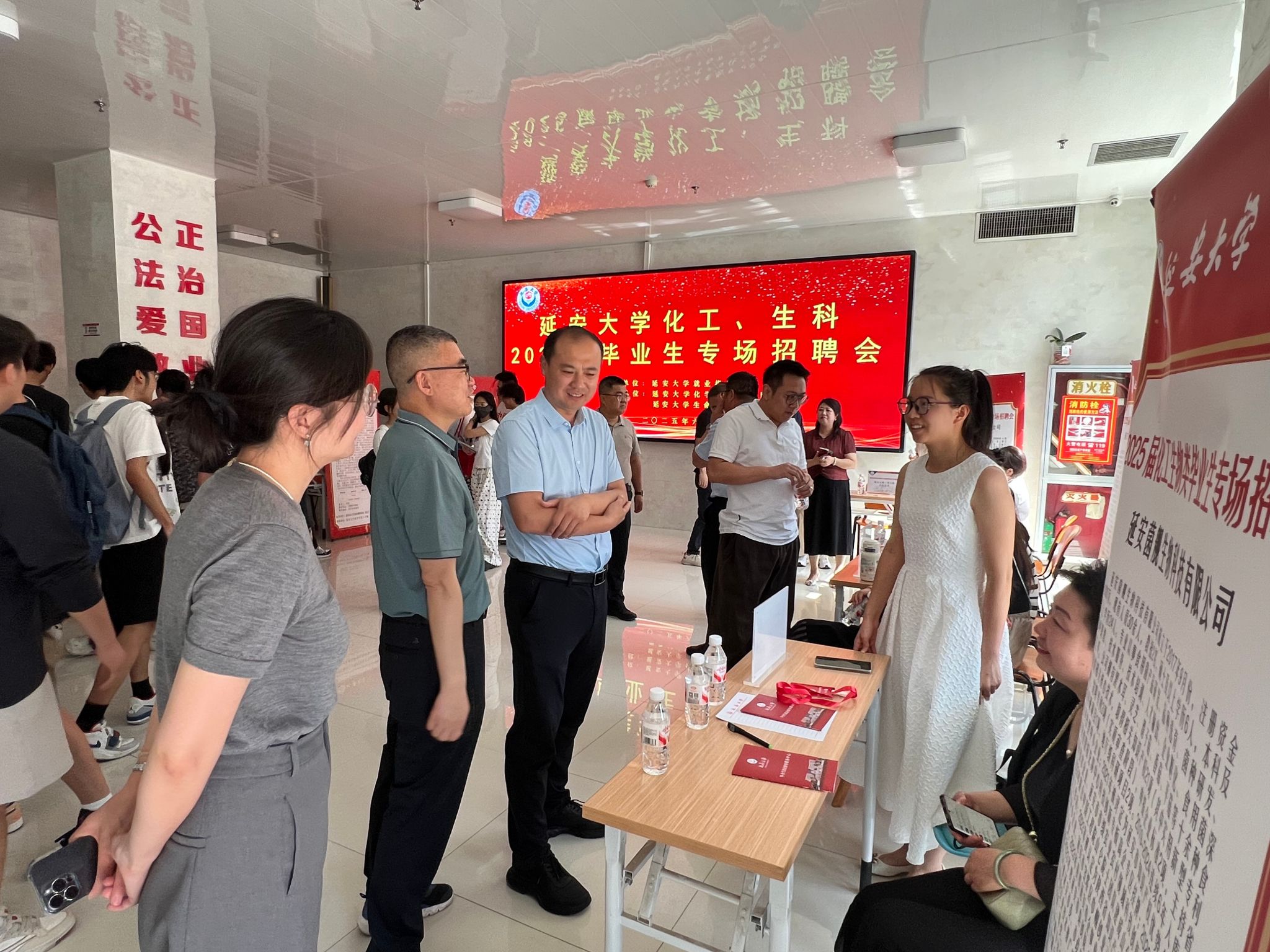 6月10日上午,由延安大学就业创业指导服务中心主办、beat365中国官方网站和化学与化工学院联合承办的2025届化工生物类毕业生专场招聘会在杨家岭校区化工大楼一楼举行。
