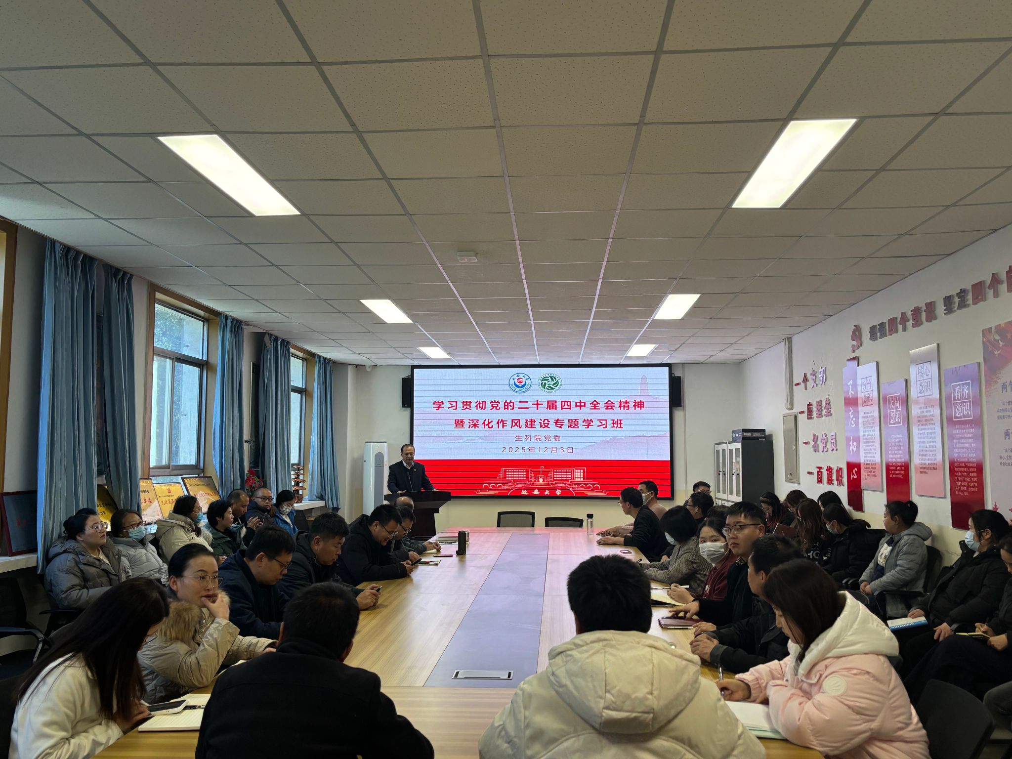 为深入学习贯彻党的二十届四中全会精神,12月3日,beat365中国官方网站举办了“学习贯彻党的二十届四中全会精神暨深化作风建设专题学习班”,学院处科级干部、全体教工党员和学生党支部委员参加了学习。学习班由学院党委书记朱伟主持。
