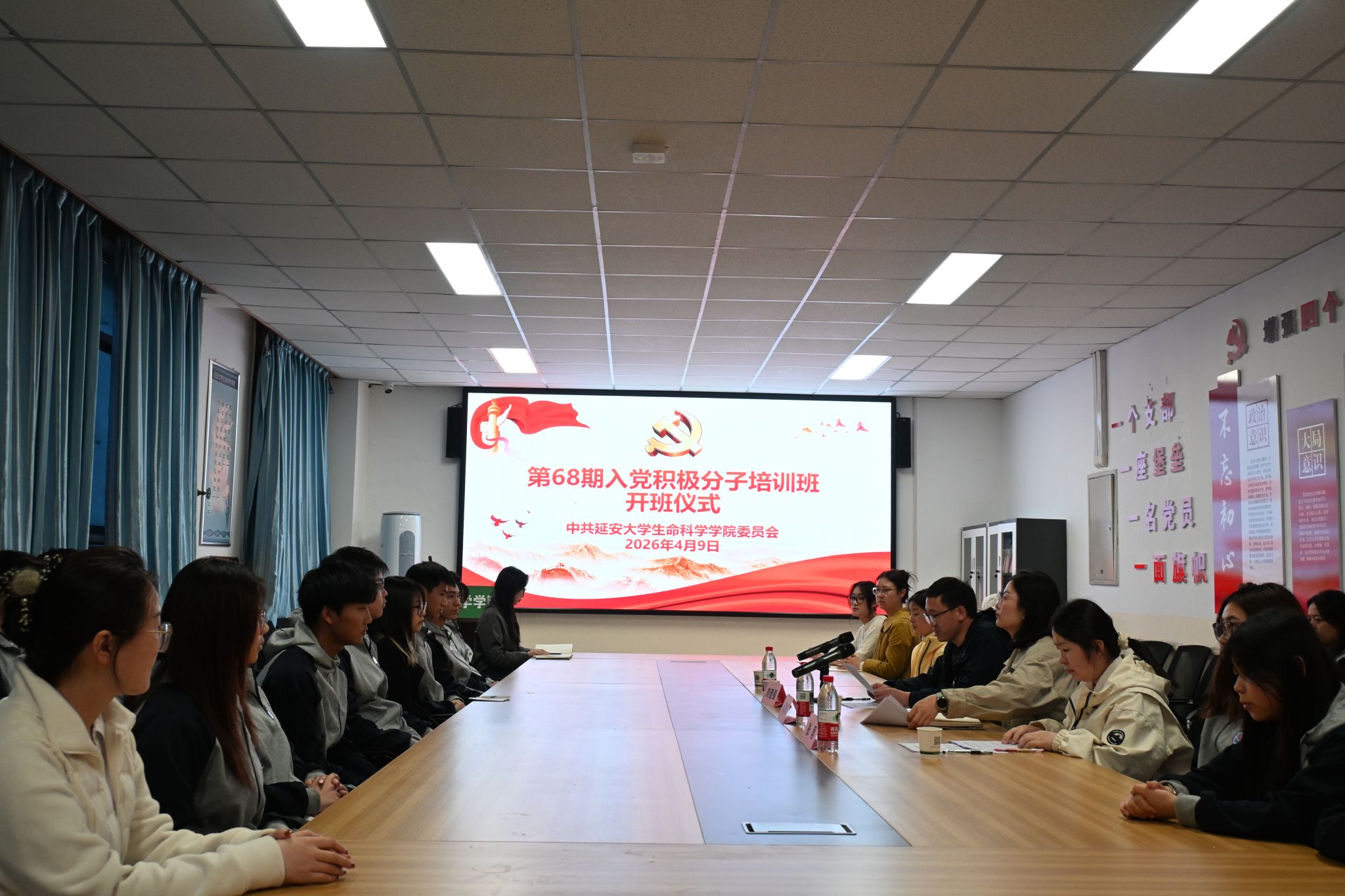 4月9日晚,beat365中国官方网站第68期入党积极分子培训班开班仪式在特立楼235会议室隆重举行。党委书记朱伟,党委副书记高媛媛,辅导员张蓉,第68期全体入党积极分子40余人参加仪式。仪式由组织员刘登强主持。