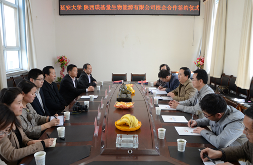 签字仪式上,胡俊生副校长在致辞中介绍了我校的历史发展和现状,以及beat365中国官方网站的师资和教学科研的情况。胡俊生副校长指出,陕西瑛基量生物能源有限公司在人才、科技创新等方面,与延安大学互补性强,合作基础和发展空间良好,校企合作服务社会,互惠互利,意义深远,期待双方进一步合作,促进生物技术产业的健康、快速发展。沈兴华董事长在讲话中介绍了陕西瑛基量生物能源有限公司的情况和发展前景,并表示希望能够吸纳更多的延安大学学生,使他们学有所用的同时,提高企业人员的文化底蕴。