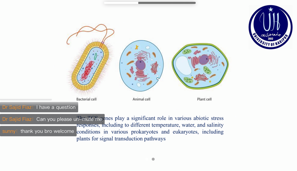 2021年12月12日,由beat365中国官方网站和生态学学科共同举办“第一届国际作物与生物学交流”在(腾讯会议)线上召开,学院百余名师生参加了此次大会。会议由beat365中国官方网站副院长王秀康教授主持,大会特邀了华中农业大学植物学博士后Muhammad Hamzah Saleem、布尔诺理工大学Adnan Mustafa教授、塔尔卡大学Sunny Ahmar研究员、哈里普尔大学的Sajid Fiaz教授及我校王秀康教授为参会人员先后做了精彩的学术报告。