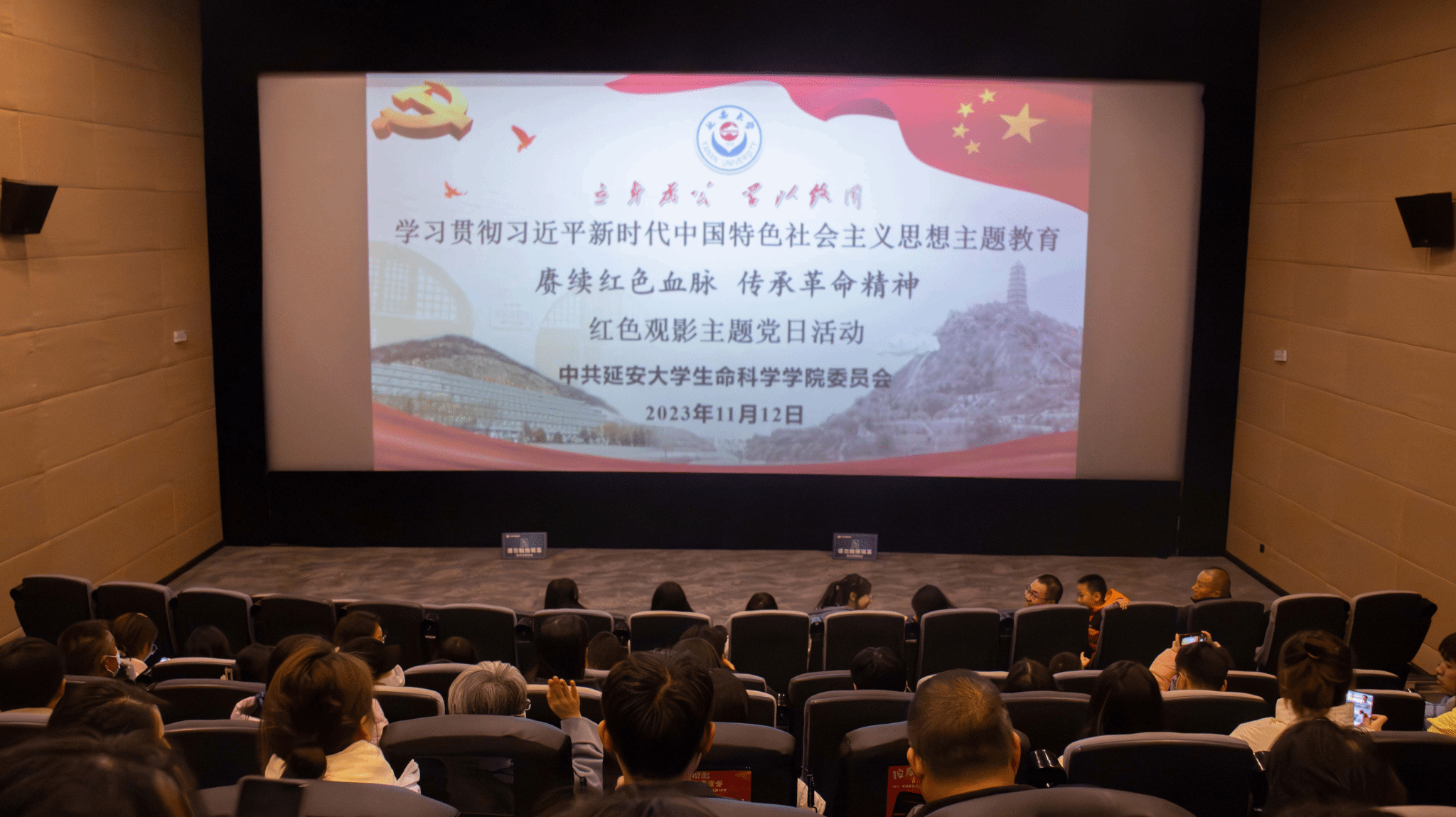 为推动学习贯彻习近平新时代中国特色社会主义思想主题教育走深走实,引导广大师生党员深入学习新中国史、社会主义发展史,11月12日,生科院党委组织了“赓续红色血脉,传承革命精神”主题党日暨红色观影活动,学院师生党员100余人观看了红色电影《志愿军:雄兵出击》。