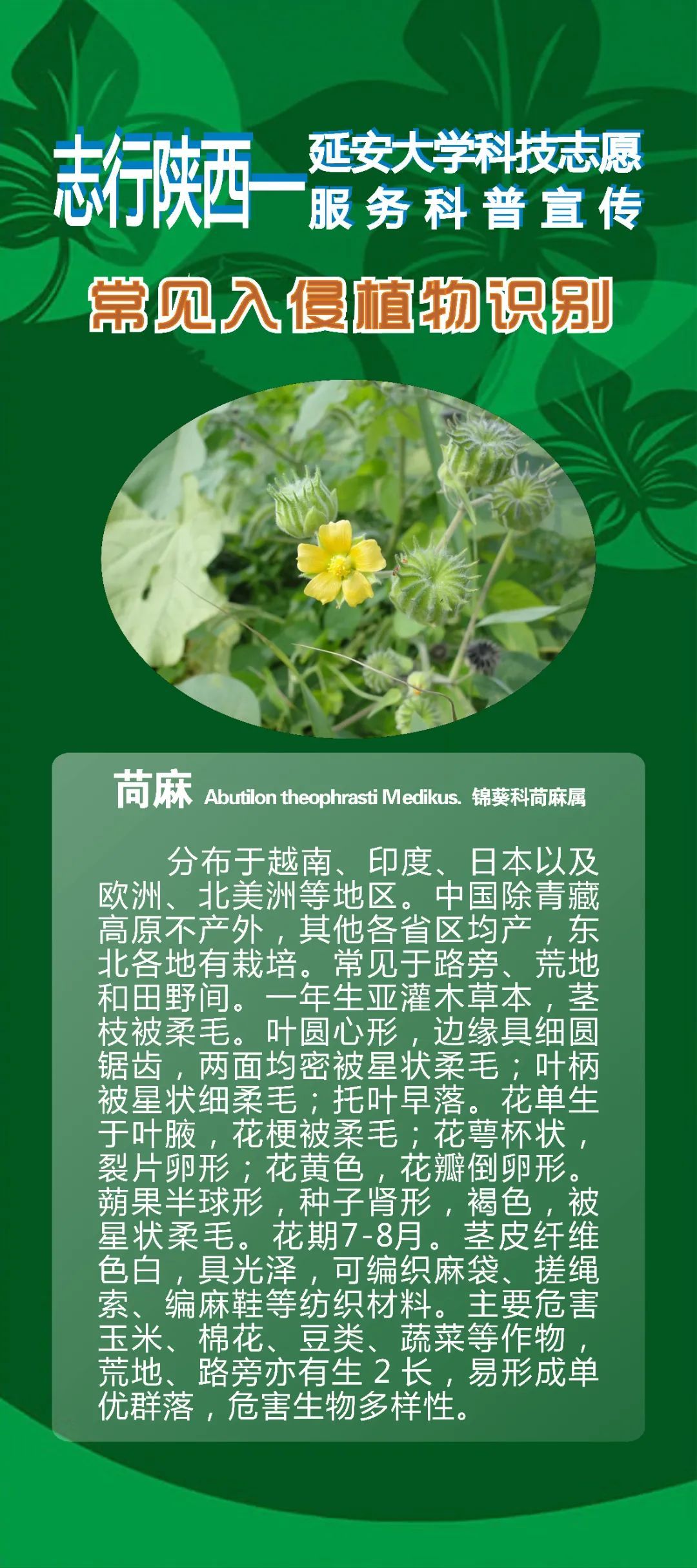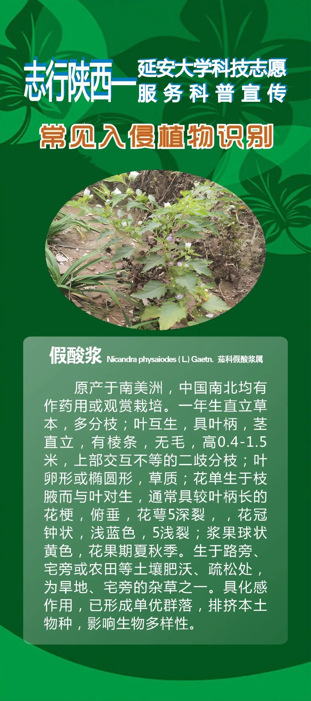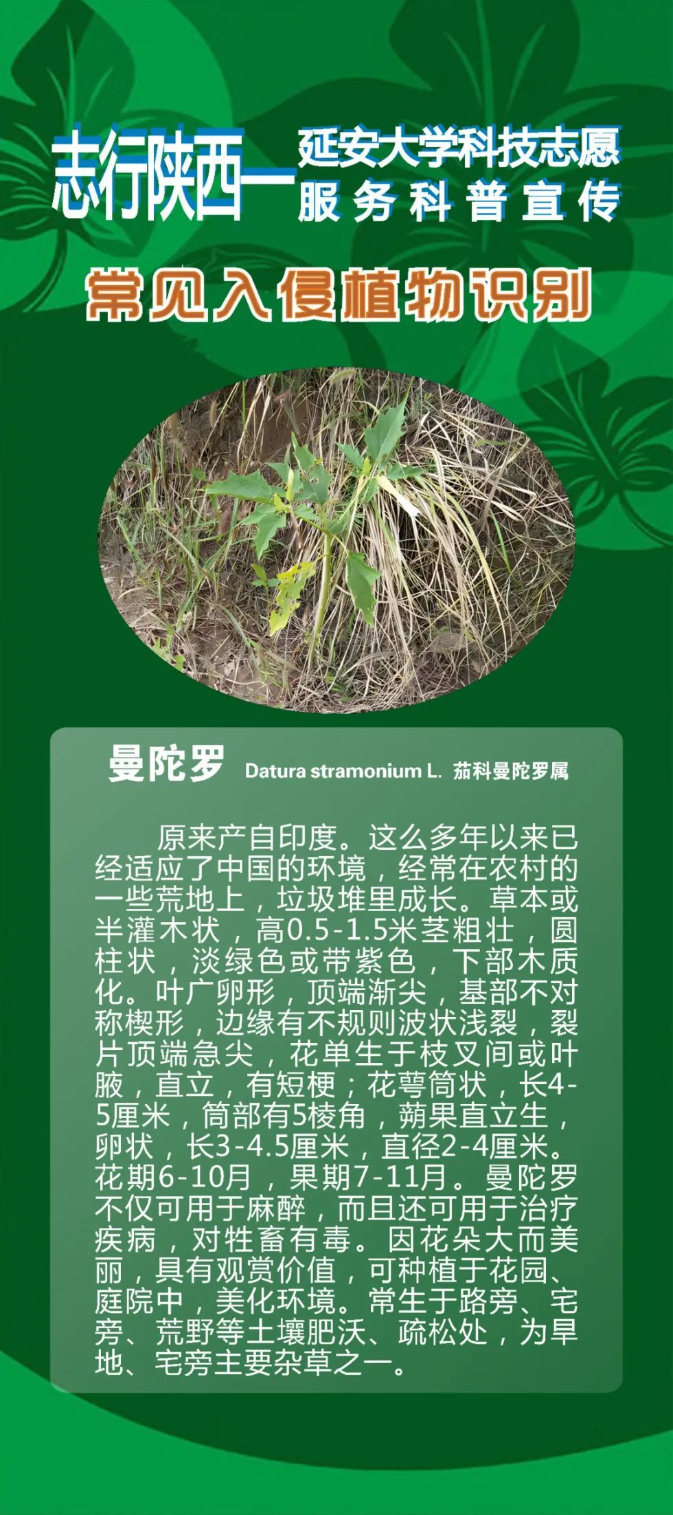 志行陕西——延安大学科技志愿服务科普宣传|常见入侵植物识别